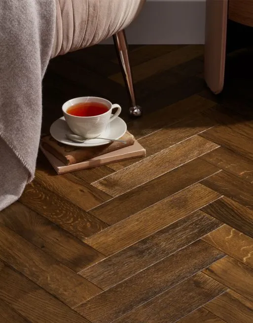 Artisan Herringbone Hot Chocolate Oak features rich chocolate tones for a warm, dark, and luxurious look. Its brushed and lacquered engineered surface ensures durability, scratch resistance, and easy maintenance. Perfect for character-filled interiors, this flooring adds warmth, style, and individuality to any space.